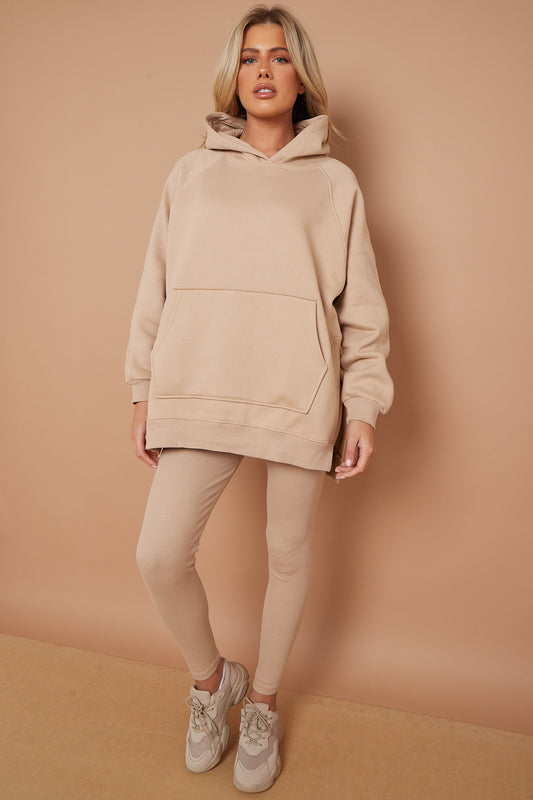 Ensemble sweat à capuche et legging long et surdimensionné avec fentes latérales Ref-1790