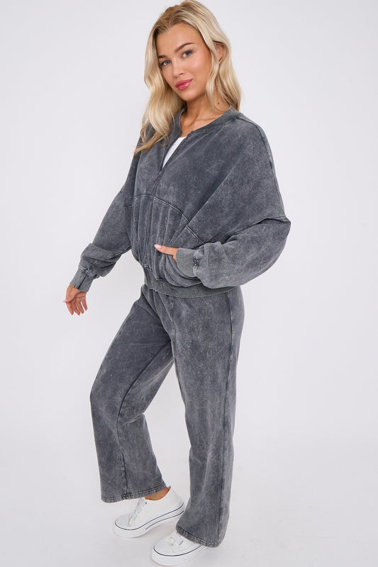 Ensemble gilet délavé zippé style over size avec pantalon large assorti, tenue décontractée d'inspiration vintage Ref-1876